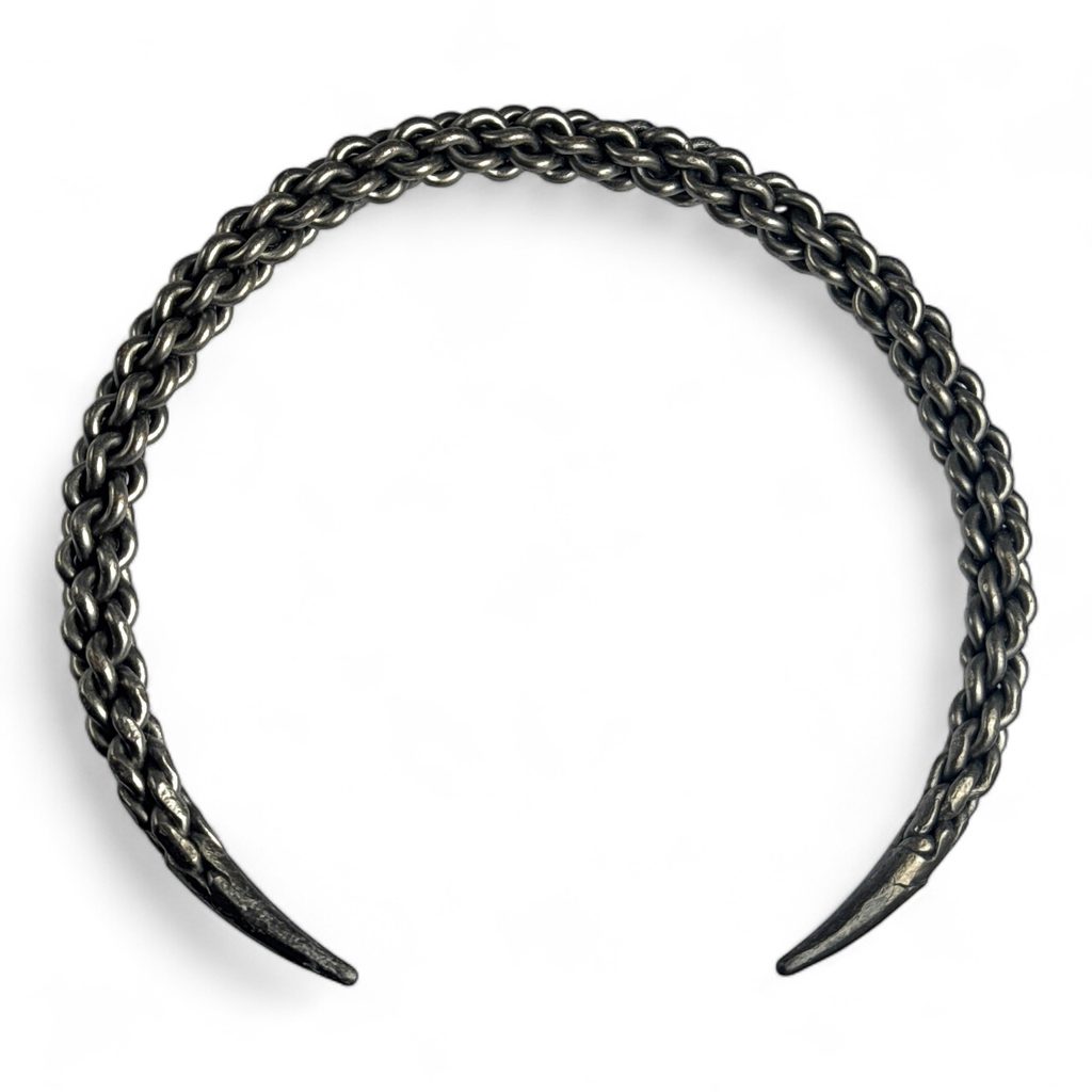 Torqueforgé à la main - le bijou des anciens rois, des héros, des druides et des dieux. Ce bijou est conçu et ajusté pour un port confortable. Vous pouvez simplement l'ouvrir et le fermer. La torche est forgée à la main, finie en noir avec de l'écorce de chêne et une laque anticorrosive est utilisée.