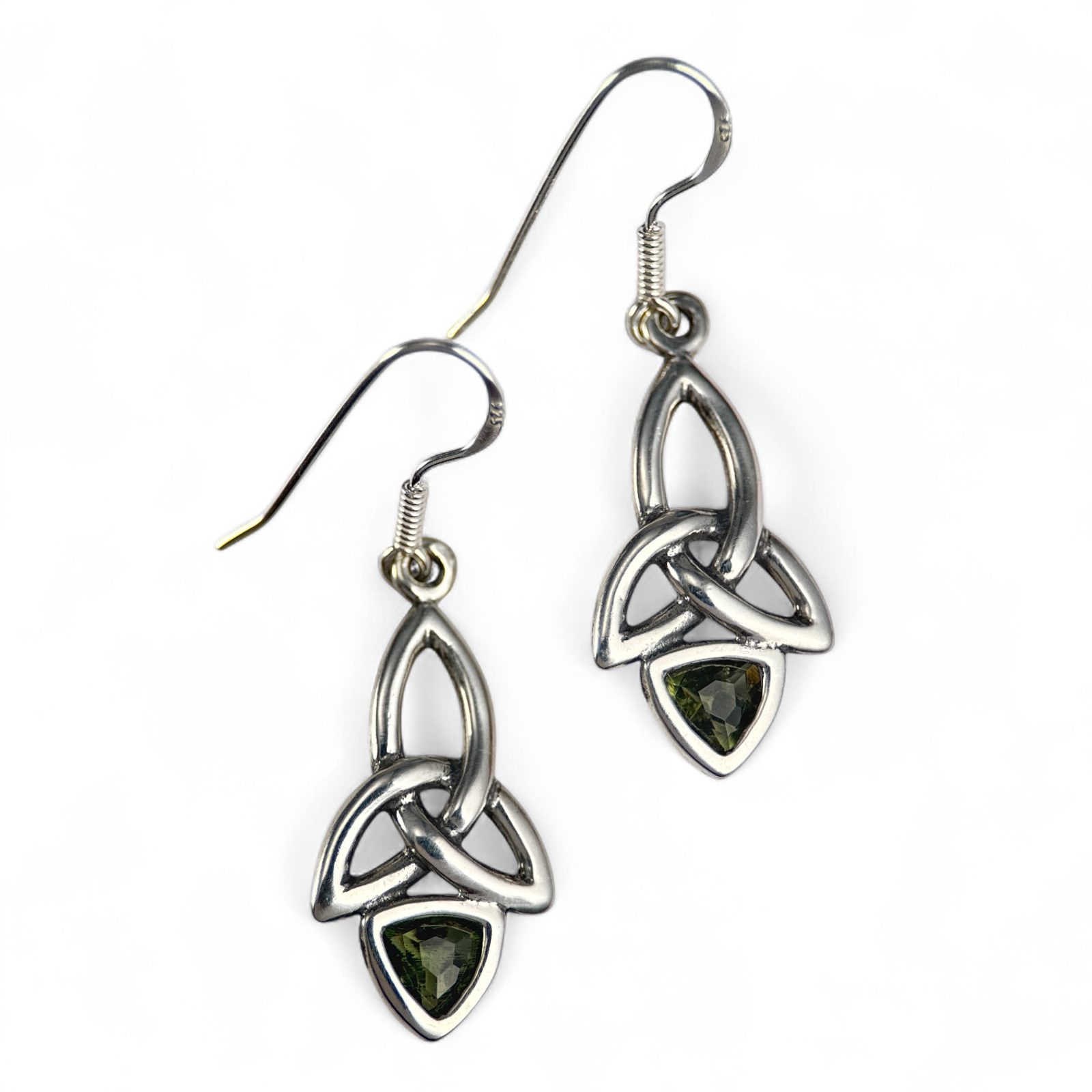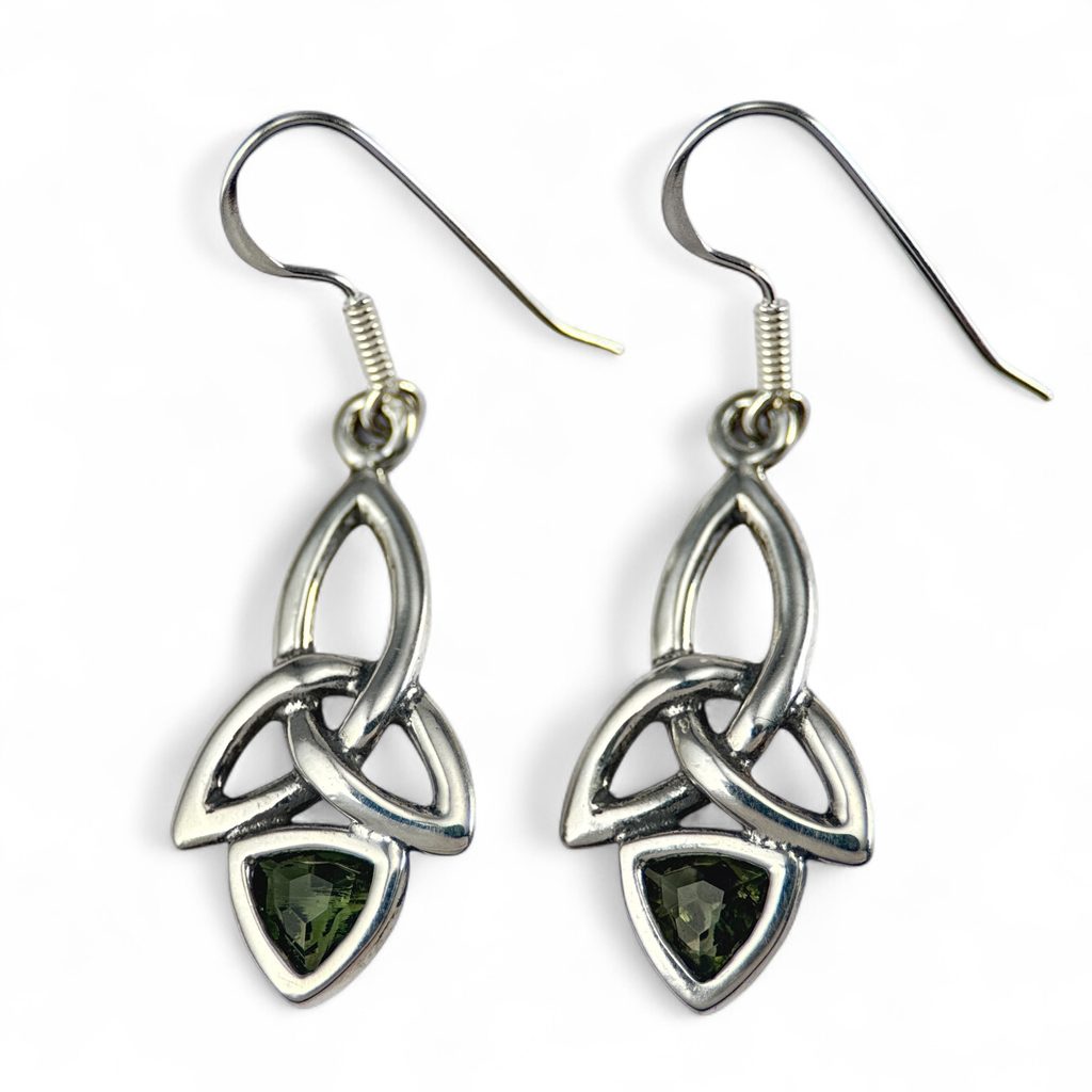 Boucles d'oreilles en argent avec moldavite à facettes.