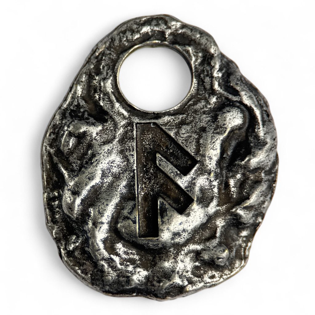 Taille : 2,5 x 4 cm. Matériau : étain patiné. Coton serré inclus.