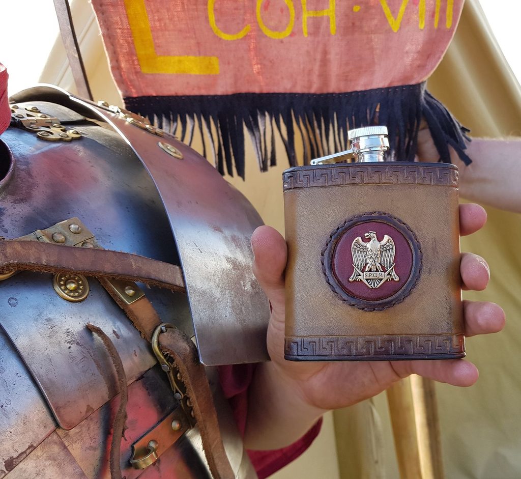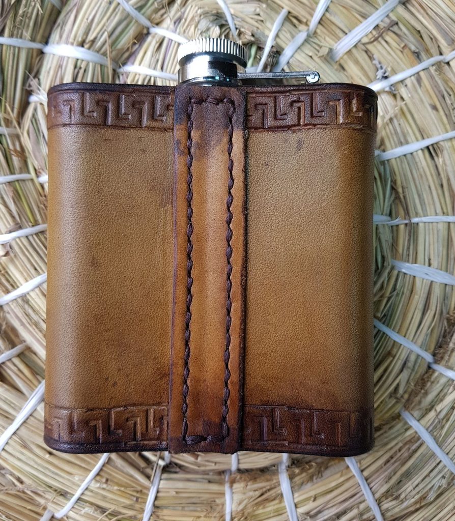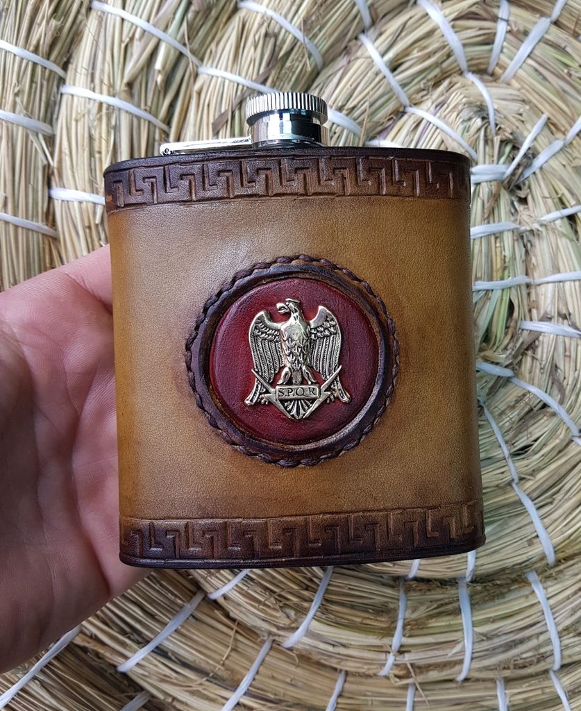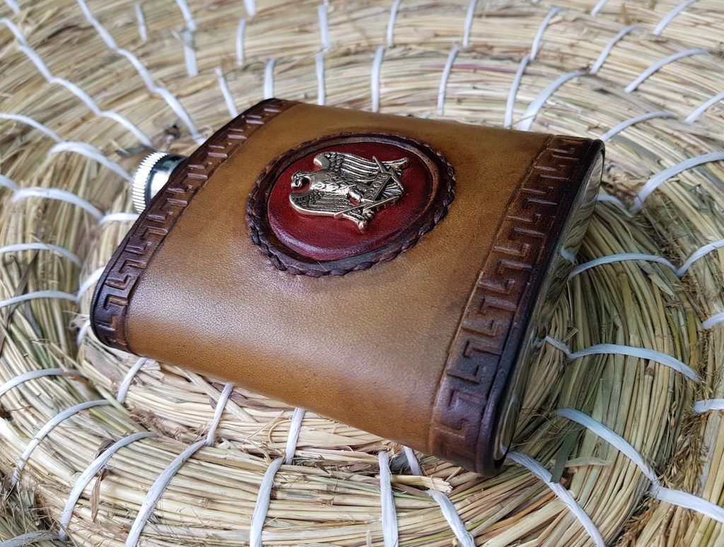 Ballon inoxydable de la hanche dans la couverture en cuir. Volume : 0,17 litres.