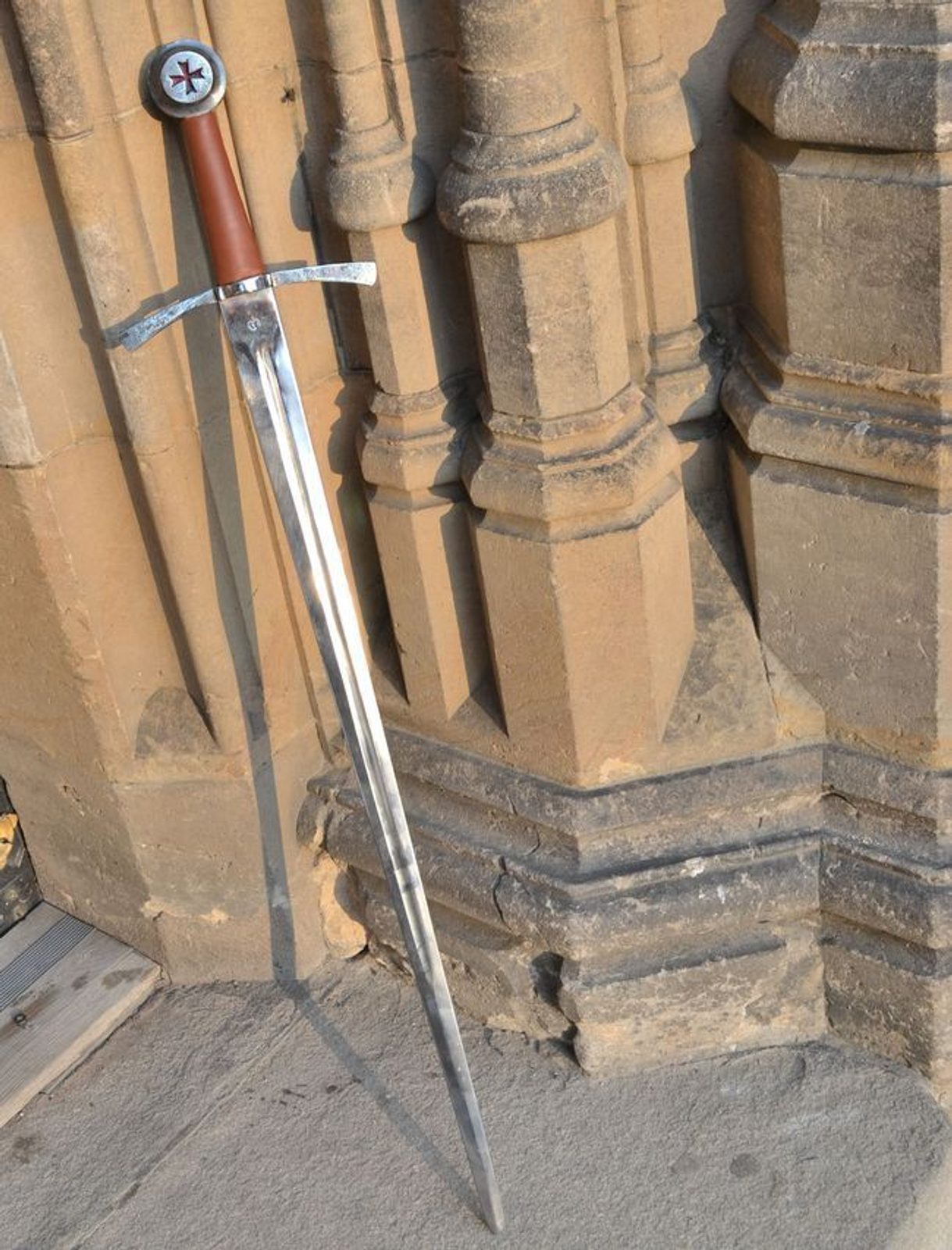 ÉPÉE à une main avec pommeau en croix rouge, conçue pour l'escrime.