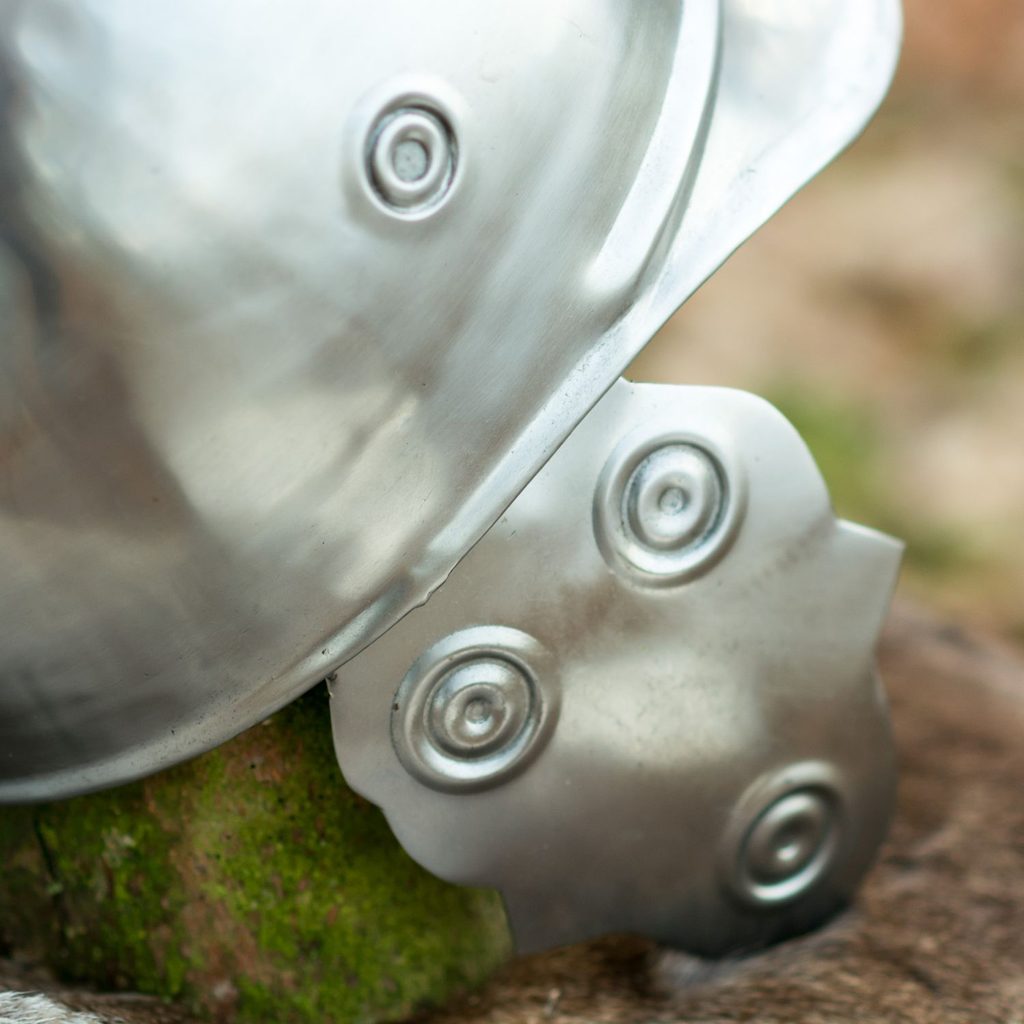 Ces casques étaient principalement utilisés dans les régions alpines et dans le nord de l'Italie. Un crin de cheval était probablement attaché au sommet du casque. Une doublure confortable en cuir est incluse.