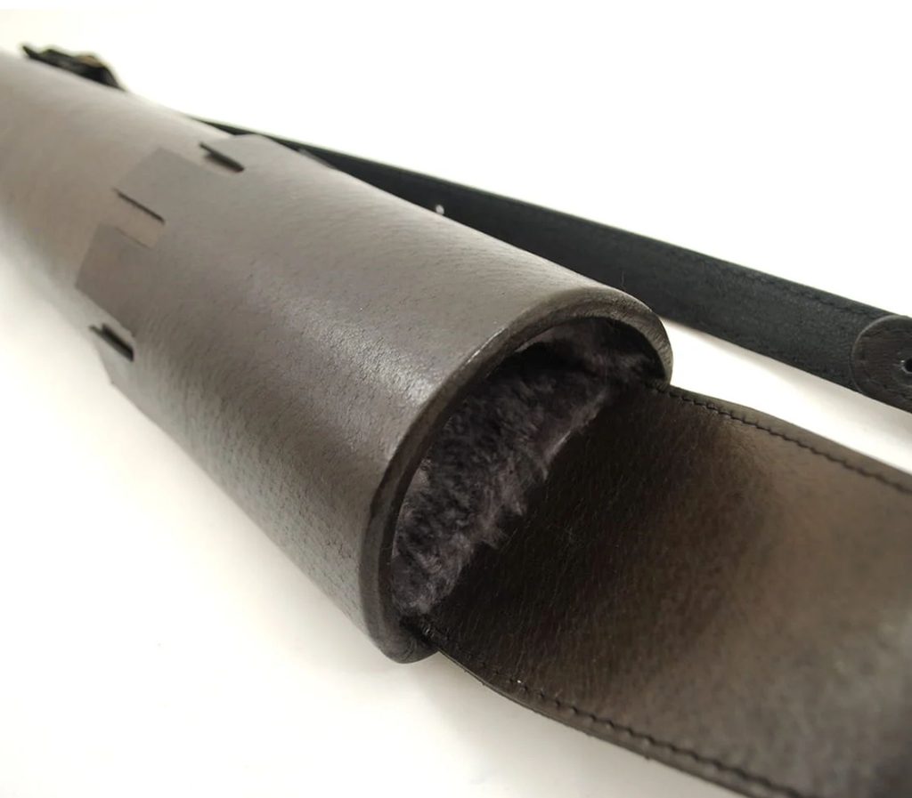 Le trou est doublé de peau de mouton, ce qui protège et amortit le mouvement des flèches dans le carquois lorsqu'elles sont tirées. La large bandoulière confortable peut être réglée à la longueur voulue.