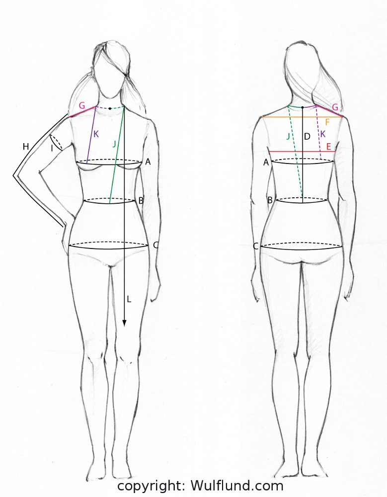 J – hauteur frontale de la 7eme cervicale à la taille.