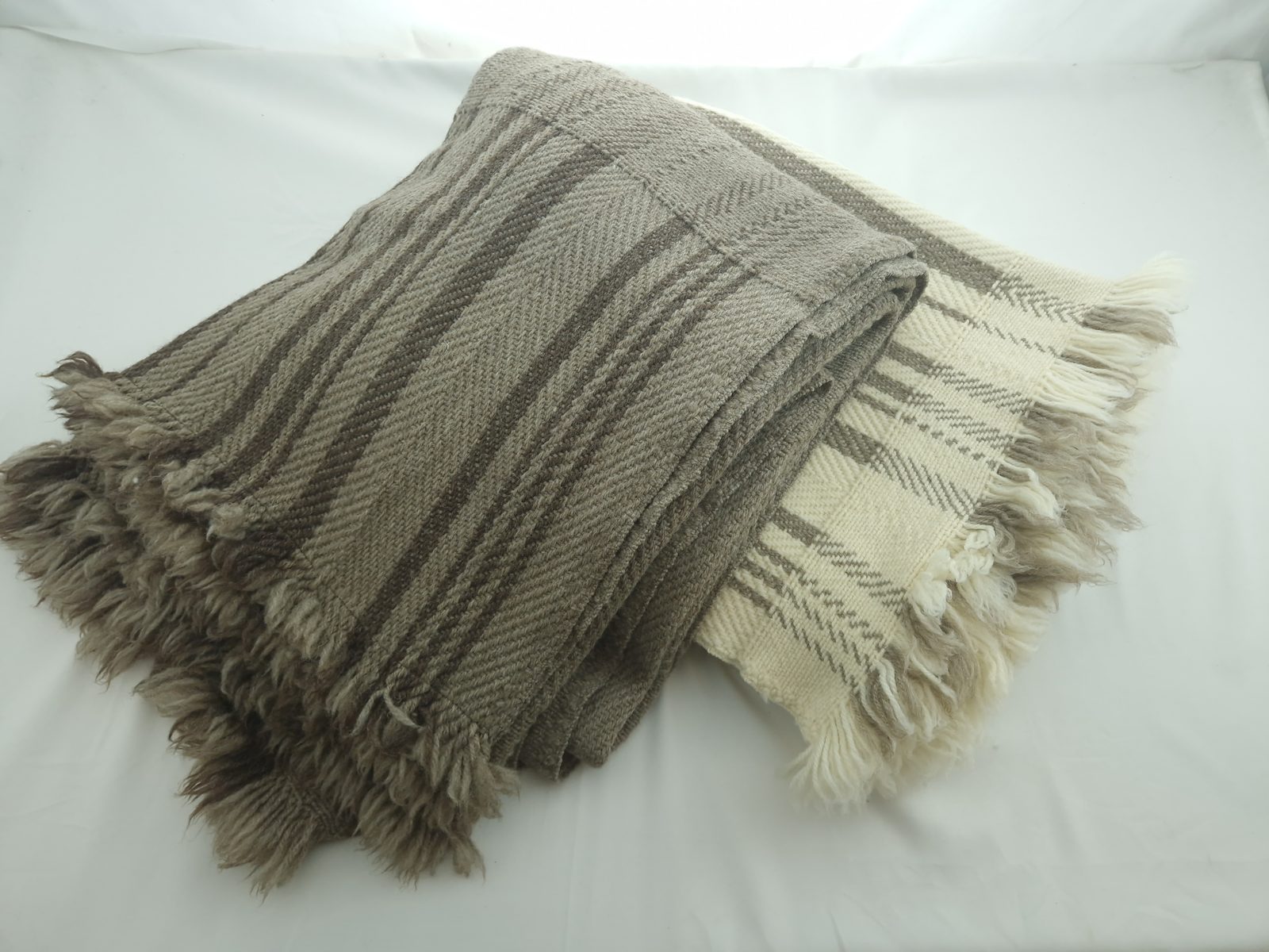 Les couvertures sont faites à 100 % de laine de mouton, provenant des bergers locaux. Aucune carbonatation (traitement acide de la laine) n'a été utilisée pour leur fabrication. Lavez-les à 30°C maximum sur le programme laine et utilisez des détergents pour laine contenant de la lanoline. Les couvertures deviennent plus douces après le lavage. Ne pas les sécher au sèche-linge ni les nettoyer à sec et les repasser à une température inférieure à 110 °C.