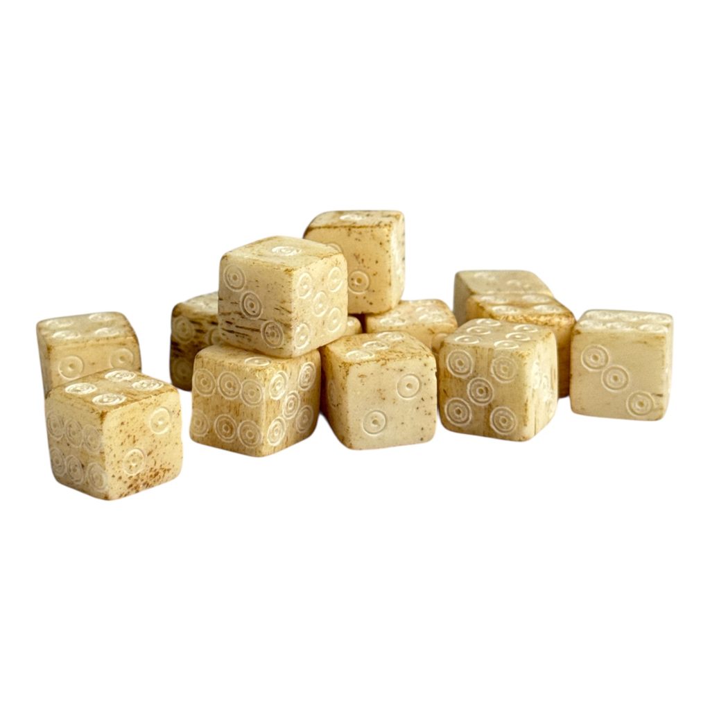 Les dés en os sont inspirés des découvertes faites dans les camps romains, les villages vikings et les villes médiévales.