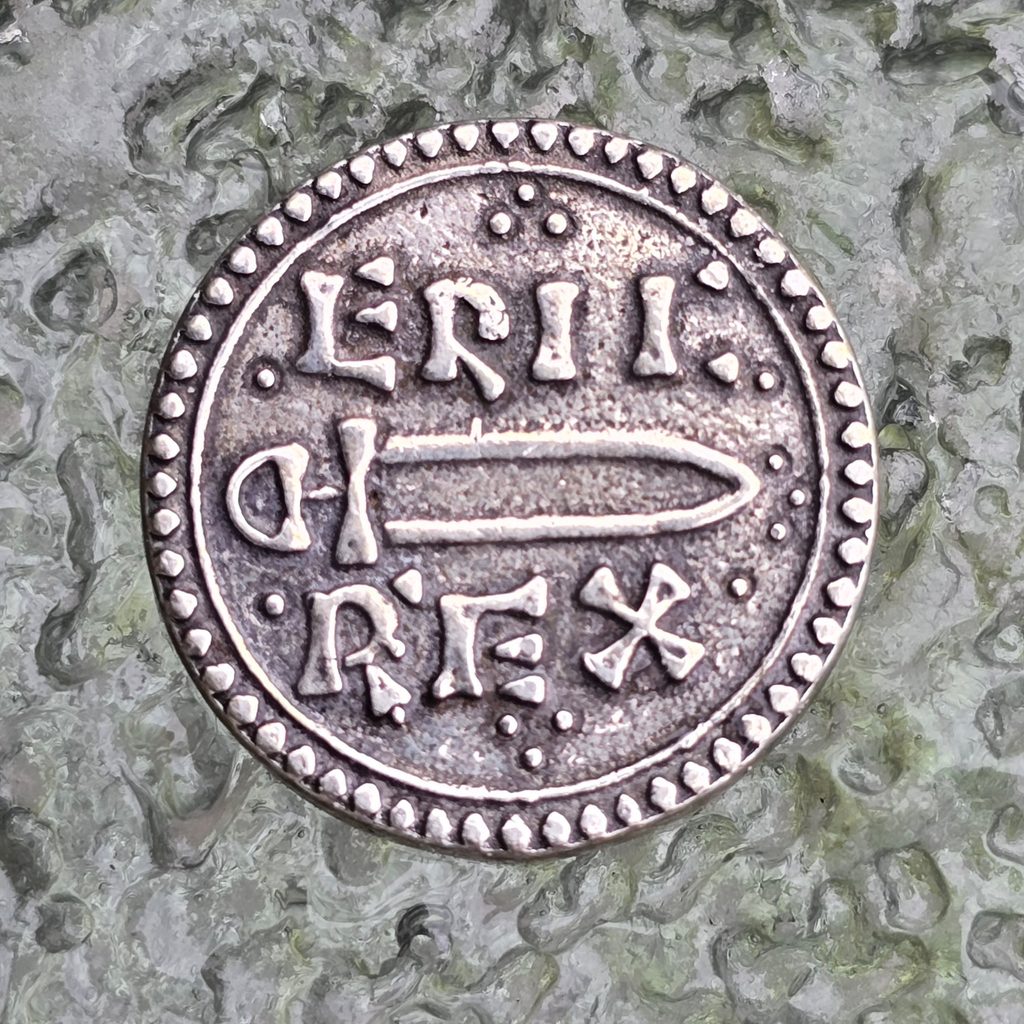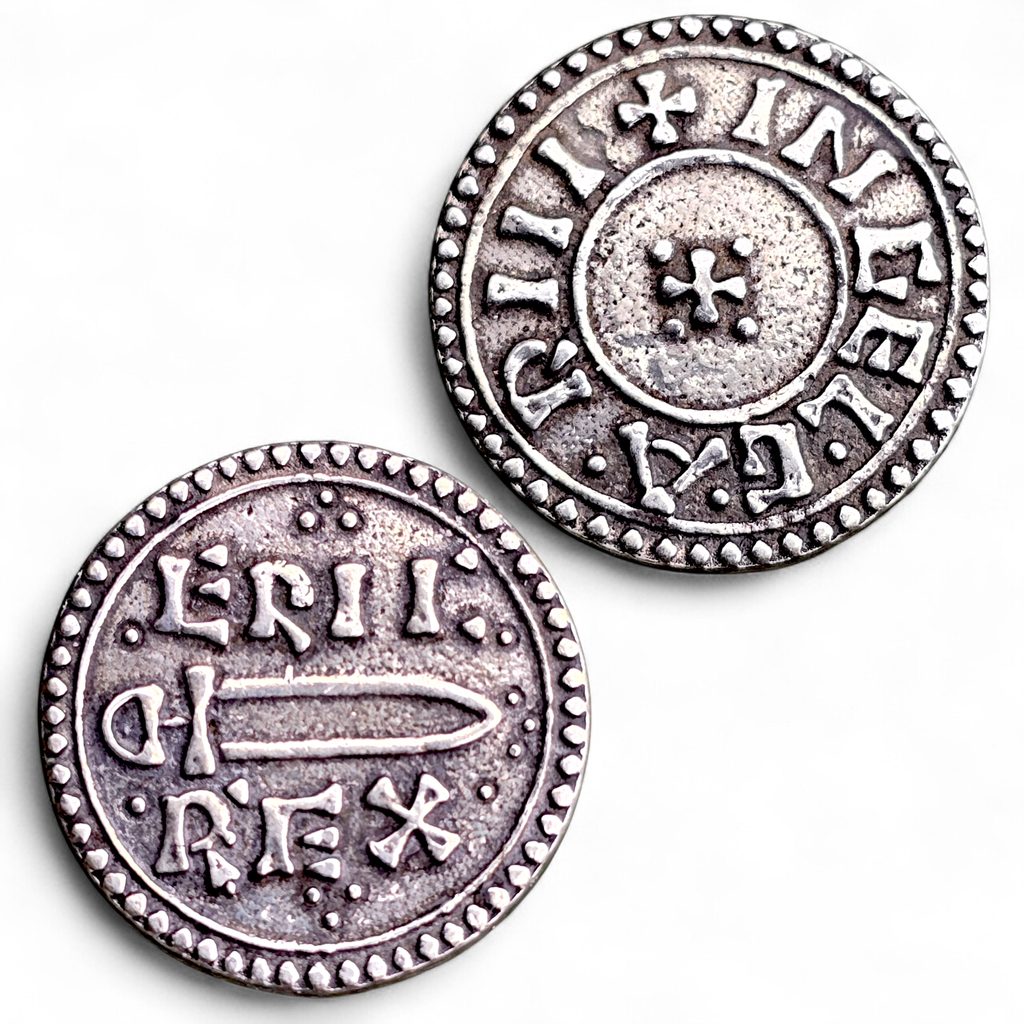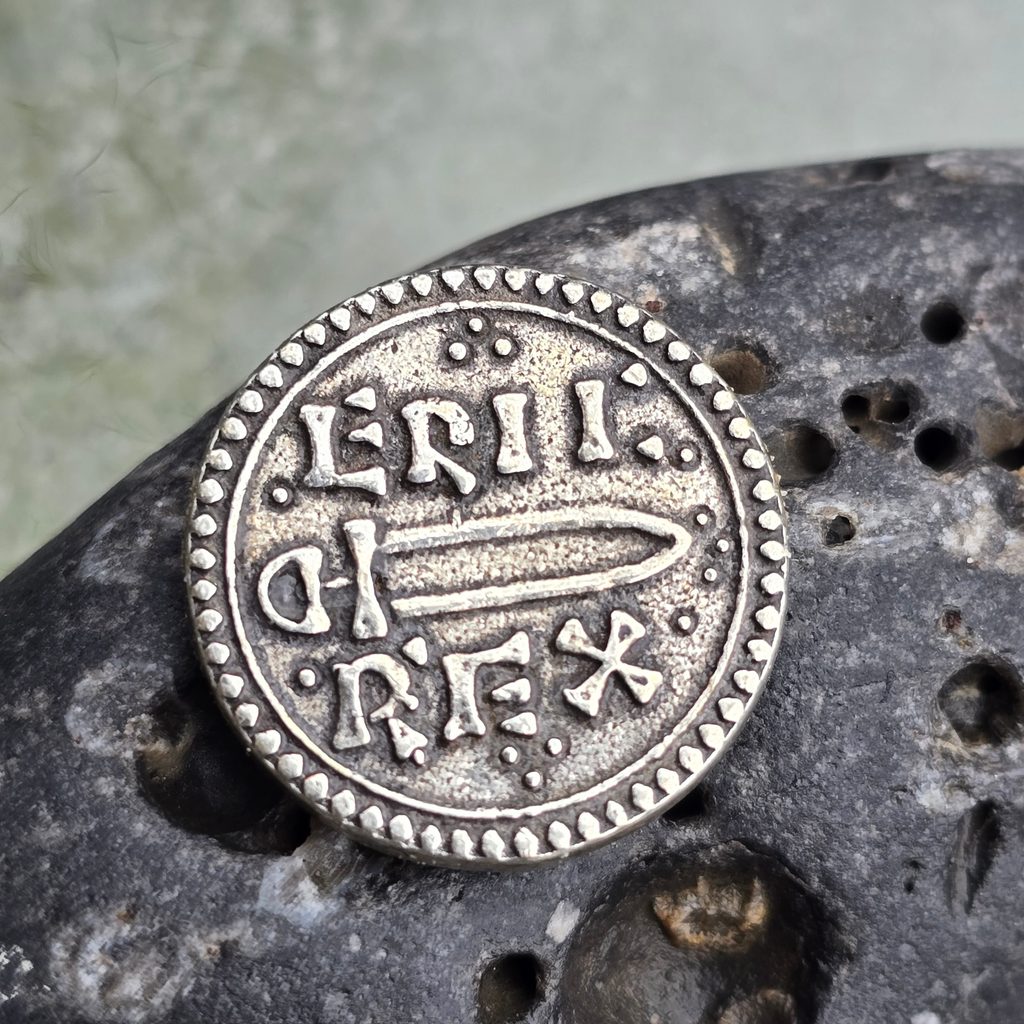 Reproduction d'une pièce de monnaie d'un souverain viking d'Angleterre et d'Irlande. Dans ce cas, il s'agit d'ERIC BLOODAXE (952-954), Northumbira.