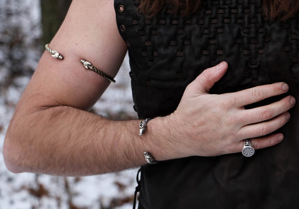 Bague de bras viking du laiton. Le design est inspiré par un bracelet qui a été trouvé sur l'île de Gotland (Suède), la localité de Burg, les têtes sont basées sur le croisement du loup en Islande. Fait à la main, très confortable à porter.