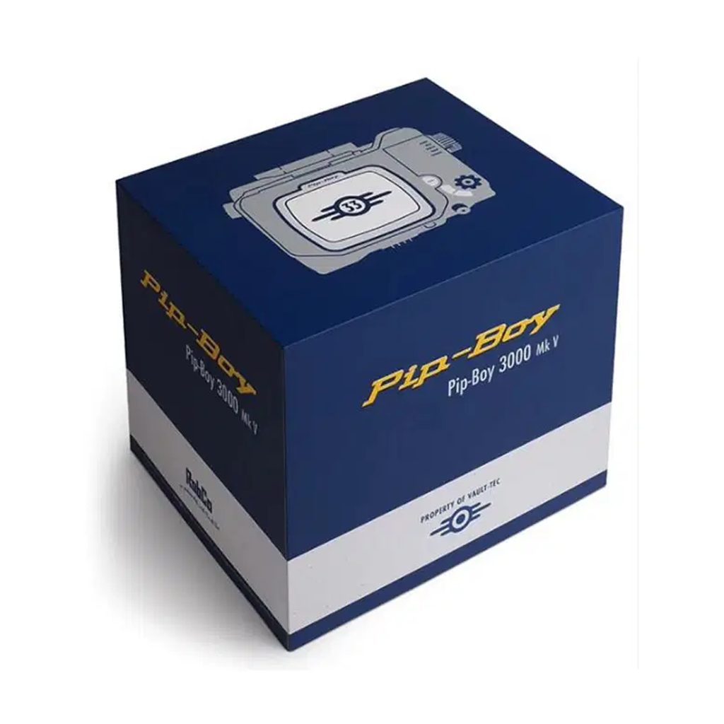 Inspiré par la géométrie de la série télévisée,le Pip-Boy est fabriqué à partir d'une combinaison de métal moulé sous pression et de plastique ABS moulé par injection. Il est doté d'un écran LCD TFT entièrement fonctionnel qui affiche des animations de la série et sert également de montre avec alarme.