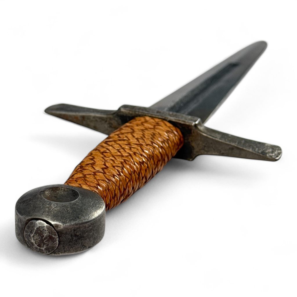 Dague médiévale forgée au design émoussé pour les besoins des reconstitutions historiques.