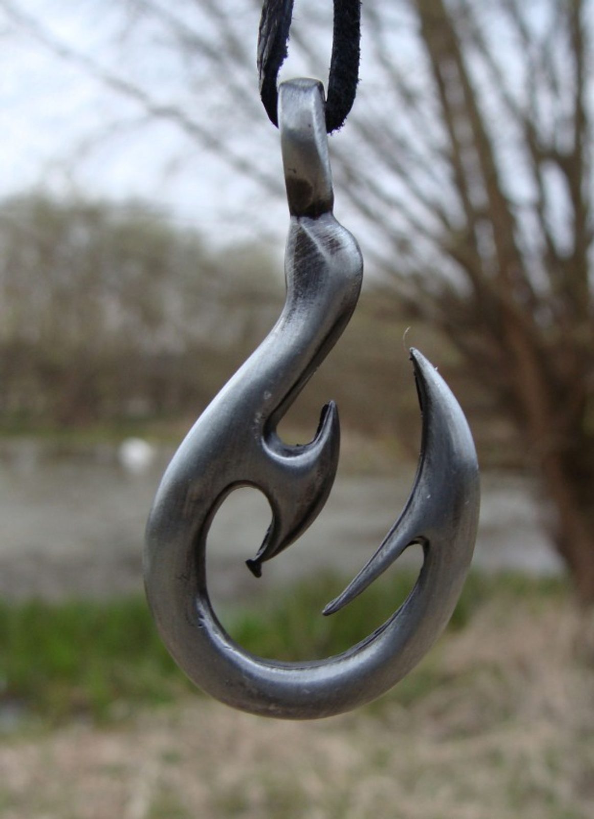 PENDENTIF TRIBAL MAORI. Il représente la force, la chance et le voyage océanique en toute sécurité. Dimensions : environ 2,7 x 5,0 cm. Le pendentif est moulé (alliage d'étain) et recouvert d'une couche de résine.