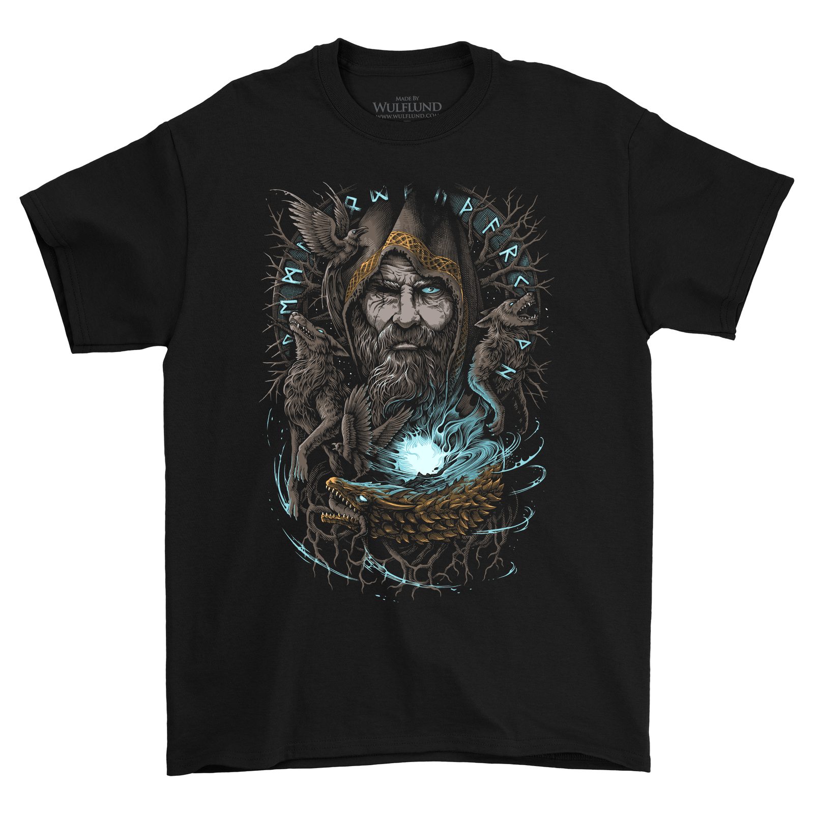 Odin est associé à la guérison, à la mort, à la royauté, à la potence, à la connaissance, à la bataille, à la sorcellerie, à la poésie, à la frénésie et à l'alphabet runique . Il a donné l'un de ses yeux en échange de la sagesse - les runes. Odin combattra le loup monstrueux Fenrir lors de la grande bataille du Ragnarök.