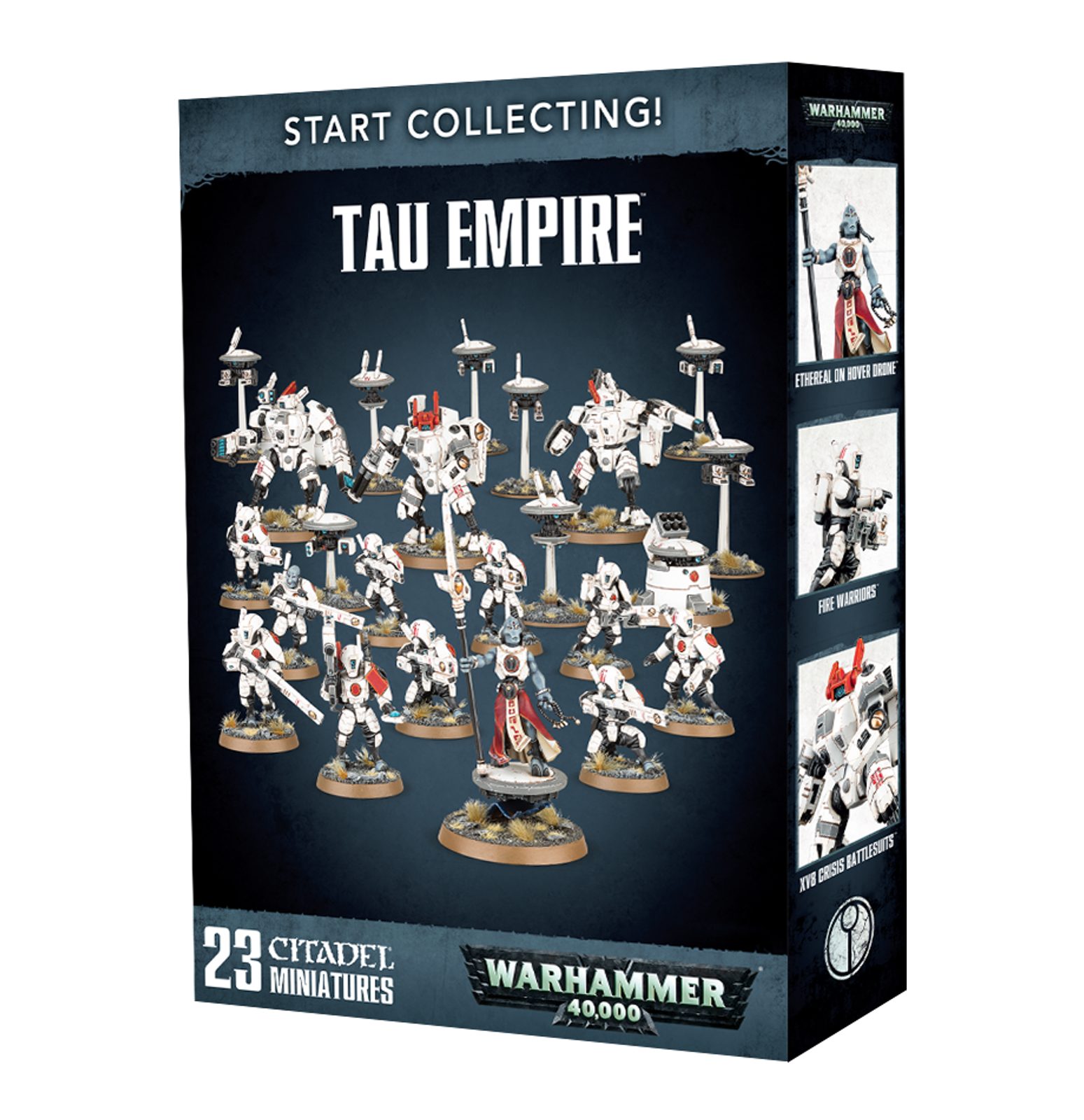 This is a great-value box set that gives you an immediate collection of fantastic T'au Empire miniatures, which you can assemble and use right away in games of Warhammer 40,000! You'll receive an Ethereal on Hover Drone, three XV8 Crisis Battlesuits and a ten-man Fire Warriors team (including two drones and a DS8 Support Turret.)