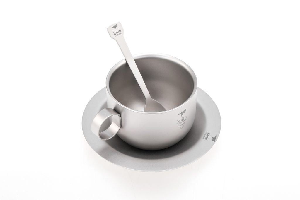 Ti3601 Tasse à café en titane avec soucoupe et cuillère KEITH