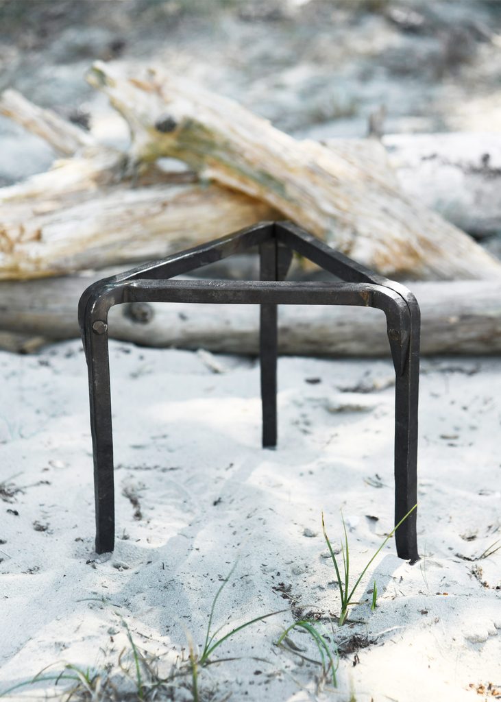 Ce trépied pratique en acier forgé à la main peut être placé directement au-dessus d'un feu de camp et utilisé comme support de cuisson pour les poêles, les casseroles ou même les plaques de cuisson.